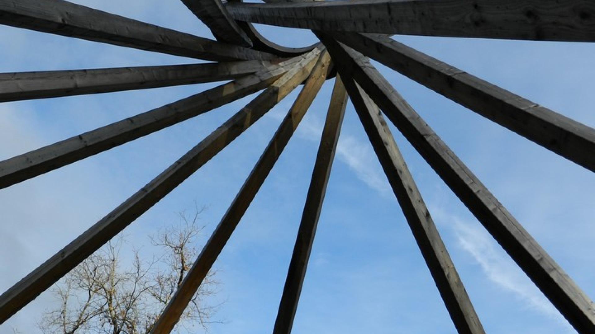Haute d’environ 11 m, cette sculpture en bois et métal symbolise la résilience de la forêt après la tempête Klaus.